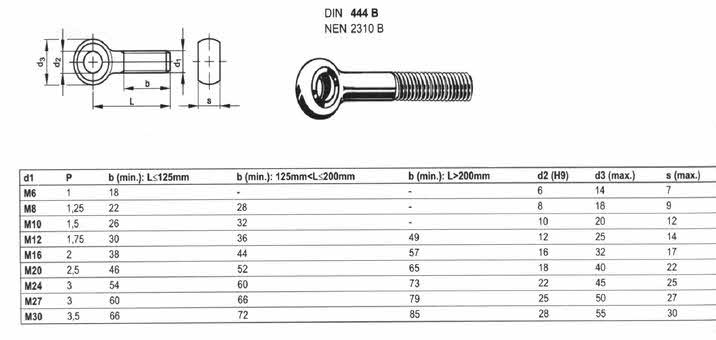 Example: Eyebolt M16 (steel class 4.6) length 110 mm + DB-